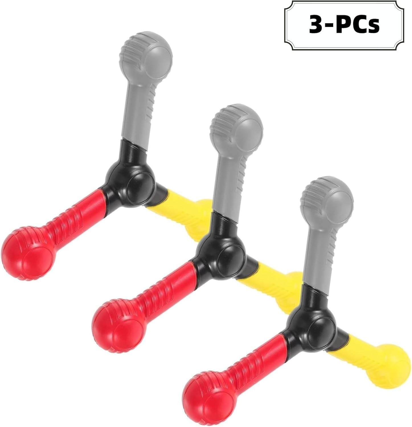 Three-pointed ergonomic design features rounded ends and center for catching and throwing; toss in the air and call out a color to catch.