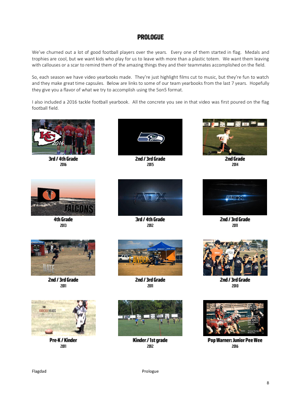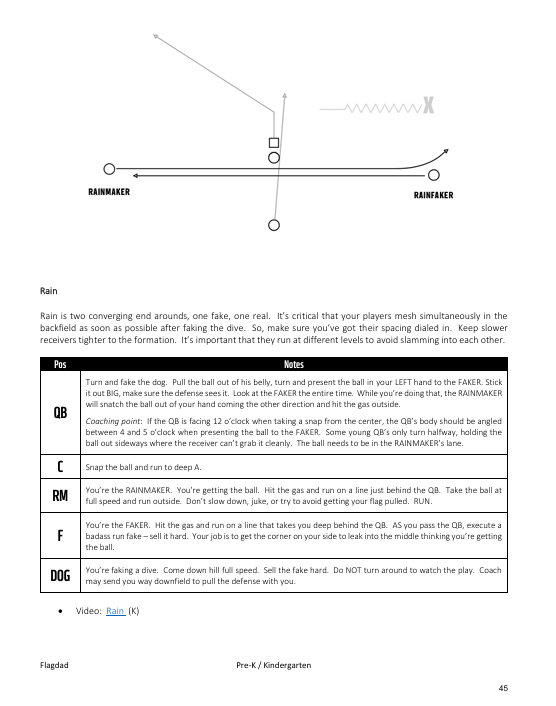 Flag Dad is a Pre-K to Kindergarten Complete Playbook is a full season coaching guide designed to give you everything you need to confidently run a fun, organized, and successful team — even if you’ve never coached before. It includes 50+ age-appropriate plays ranging from simple beginner concepts to more structured formations, along with over 20 real practice and game videos showing exactly how to teach and execute each play. The playbook breaks down how to line kids up, teach spacing, rotate players, and manage game situations, while also clearly explaining league rules and overall game management. You’ll learn how to structure practices, keep short attention spans engaged, and build basic fundamentals in a way that makes the game enjoyable for young players. This is the exact system I’ve used with my own team, complete with real footage and step-by-step guidance, so you’re not guessing what works — you’re following a proven blueprint built specifically for 4–6 year olds.